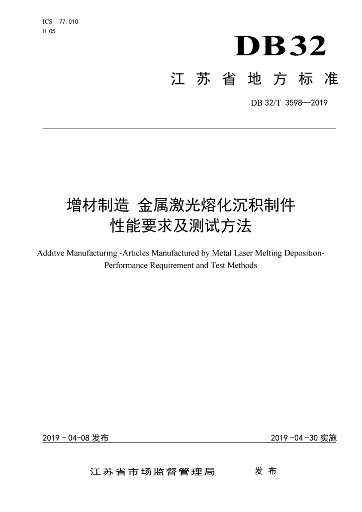 DB32_T 3598-2019 增材制造 金属激光熔化沉积制件性能要求.pdf