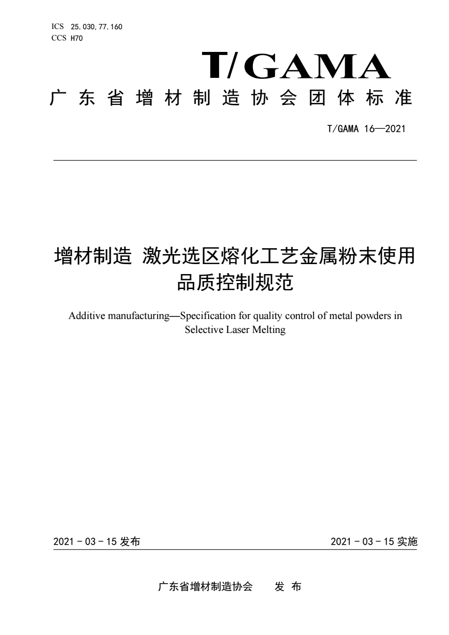 T/GAMA 16-2021 增材制造 激光选区熔化工艺金属粉末使用品质控制规范