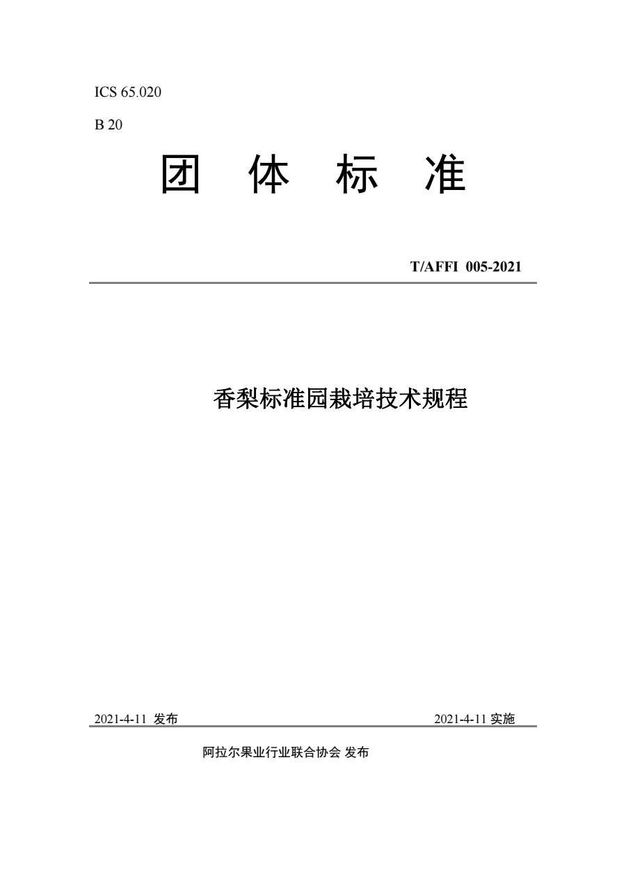 T/AFFI 005-2021 香梨标准园栽培技术规程