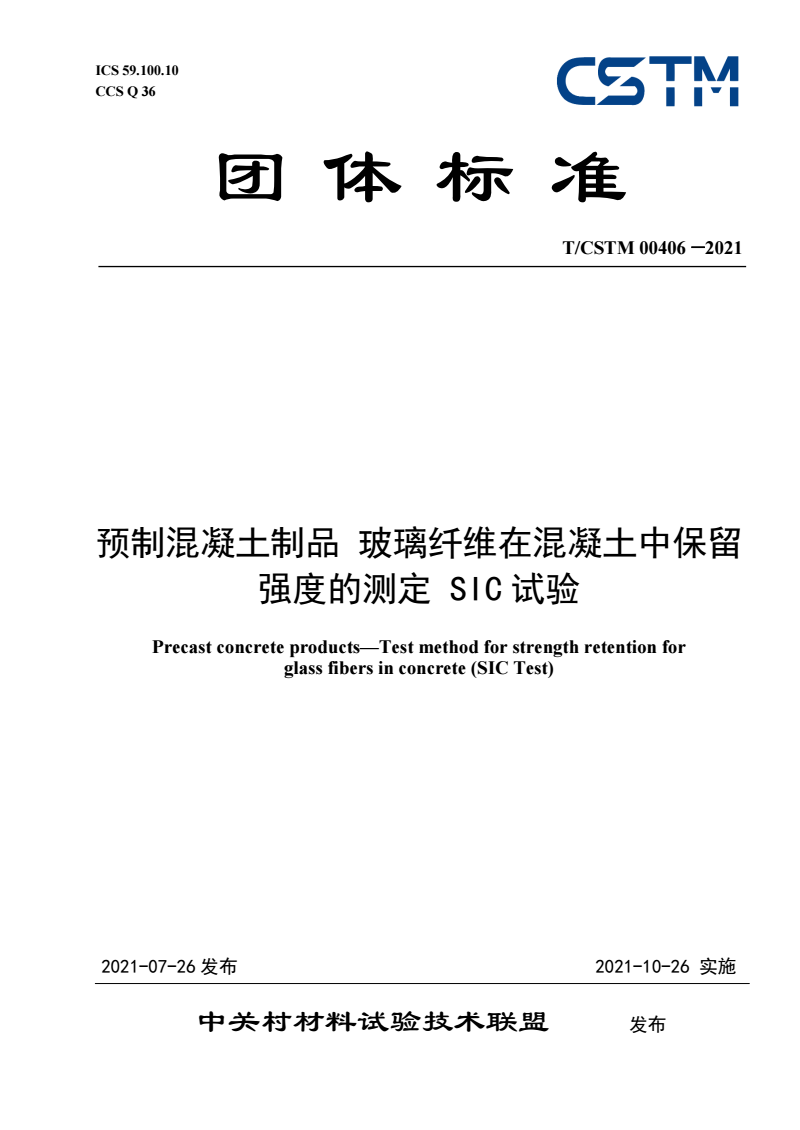 英文名称:Precast concrete products—Test method for strength retention for glass fibers in concrete (SIC Test)