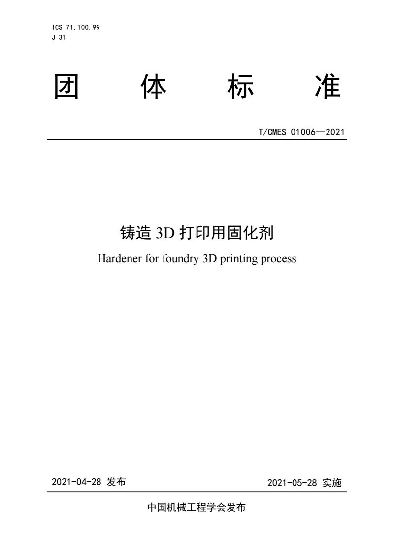 T/CMES 01006-2021 铸造3D打印用固化剂