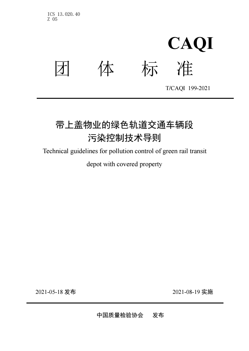T/CAQI 199-2021 带上盖物业的绿色轨道交通车辆段污染控制技术导则