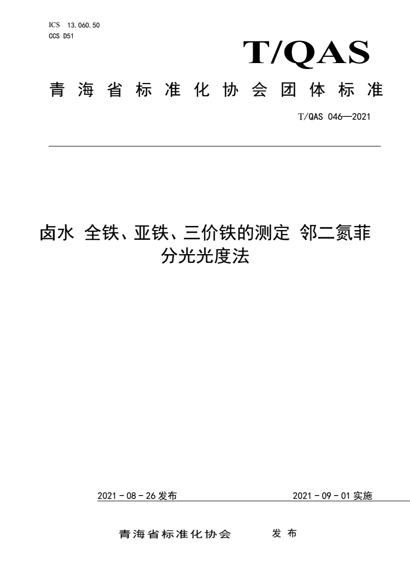 T/QAS 046-2021 卤水 全铁、亚铁、三价铁的测定 邻二氮菲分光光度法