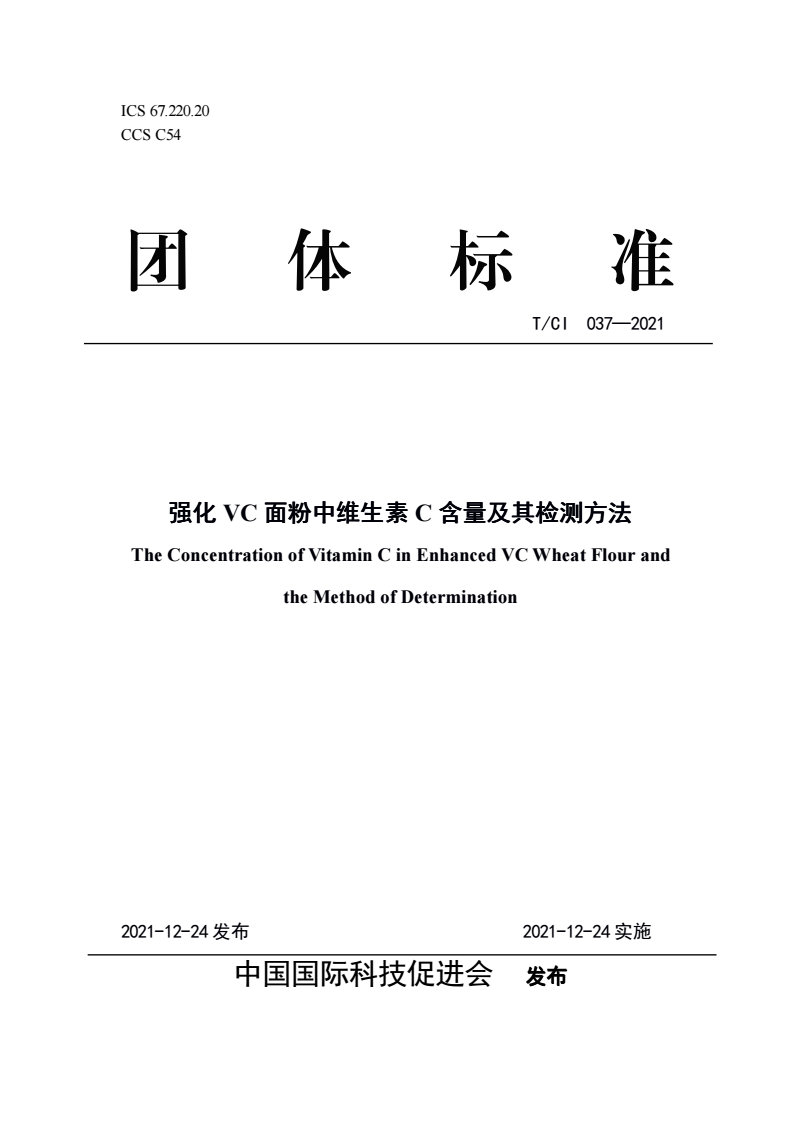 T/CI 037-2021 强化VC面粉中维生素C含量及其检测方法