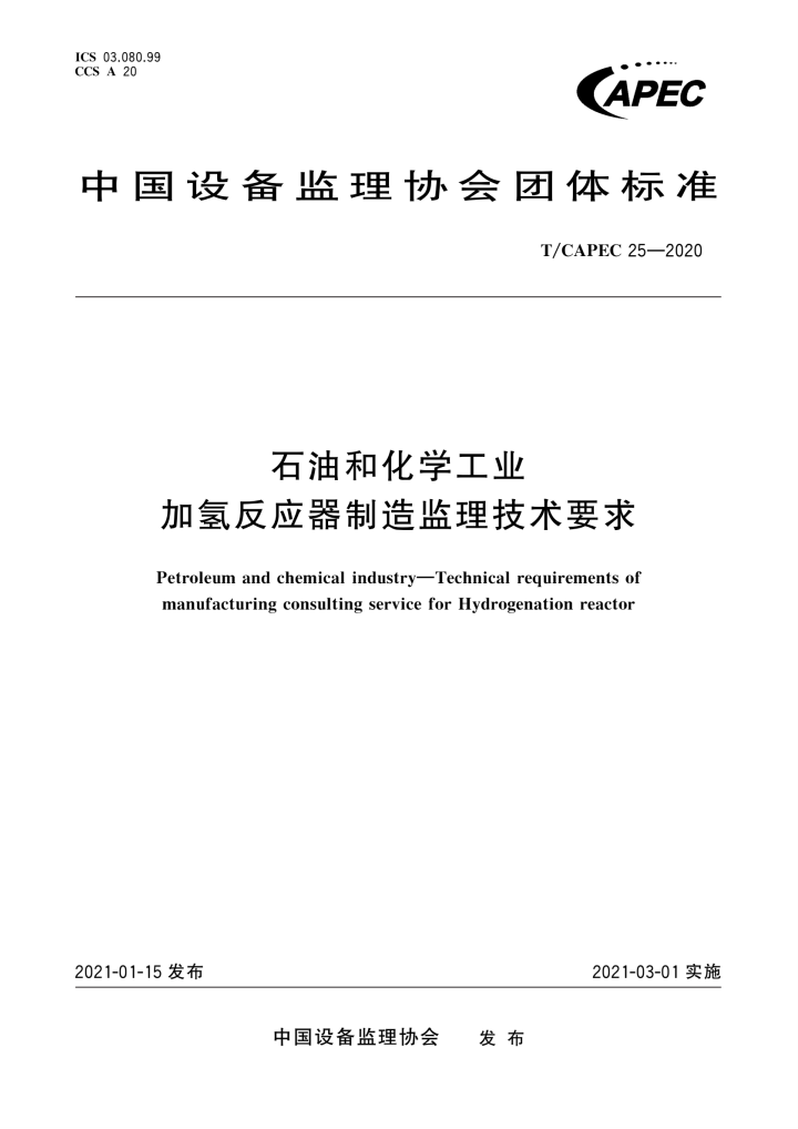 标准编号:T/CAPEC 25-2020