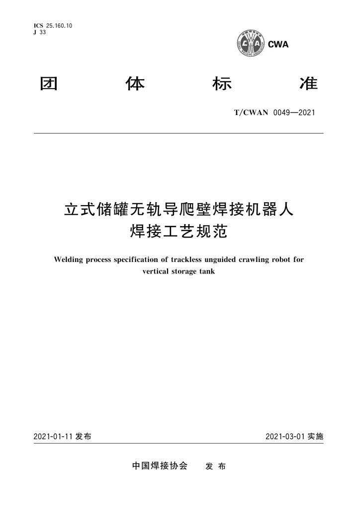 T_CWAN 0049-2021 立式储罐无轨导爬壁焊接机器人焊接工艺规.pdf