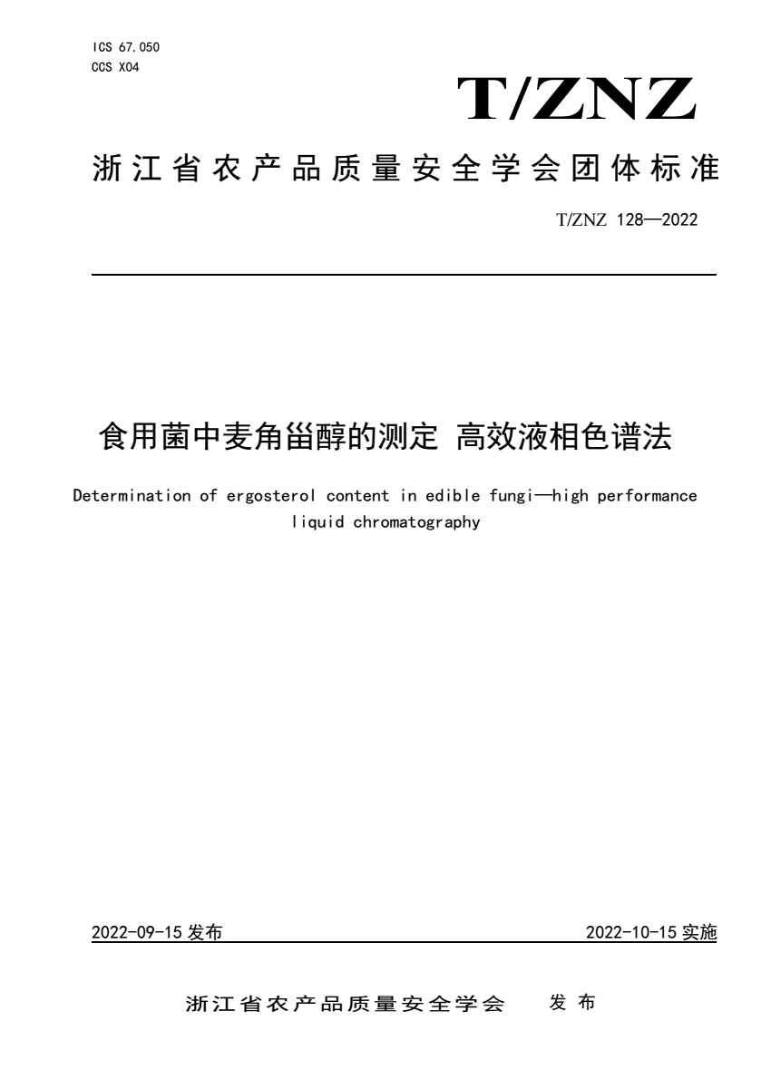 T_ZNZ 128-2022 食用菌中麦角甾醇的测定 高效液相色谱法.pdf