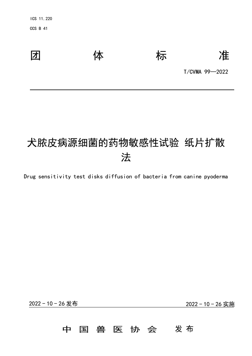 T_CVMA 99-2022 犬脓皮病源细菌的药物敏感性试验 纸片扩散法.pdf