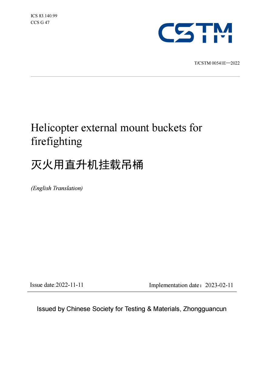 内容简介:This document specifies the structure and materials, requirements, inspection rules, marking, packaging, transportation, storage and lifetime of helicopter external mount buckets for firefighting (buckets for short). The document describes test methods of the buckets T_CSTM 00541E-2022 Helicopter extern.pdf(853.61 KB)