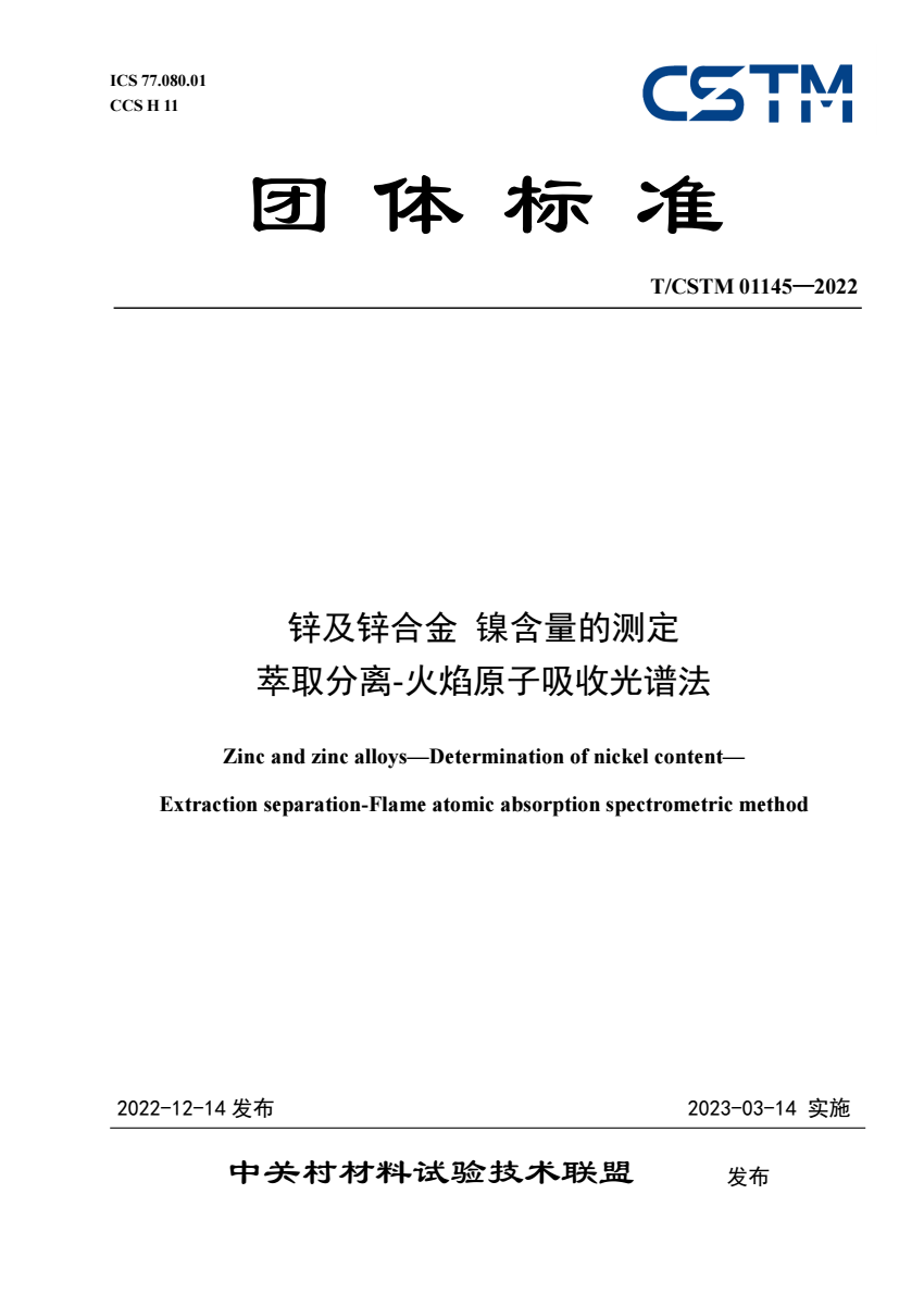 T_CSTM 01145-2022 锌及锌合金 镍含量的测定 萃取分离-.pdf