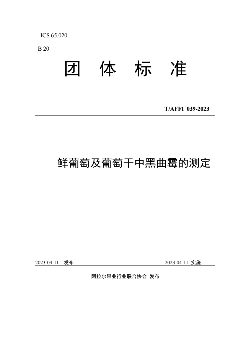 T_AFFI 039-2023 鲜葡萄及葡萄干中黑曲霉的测定.pdf
