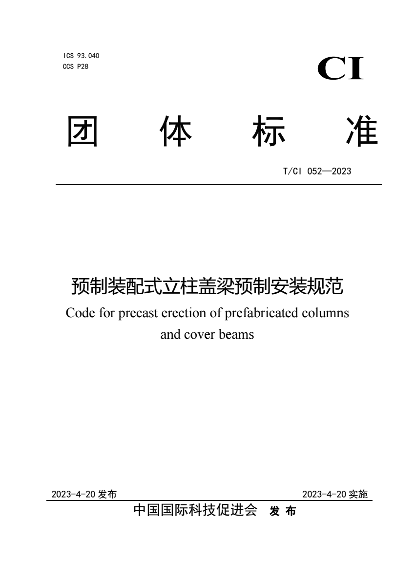 T_CI 052-2023 预制装配式立柱盖梁预制安装规范.pdf