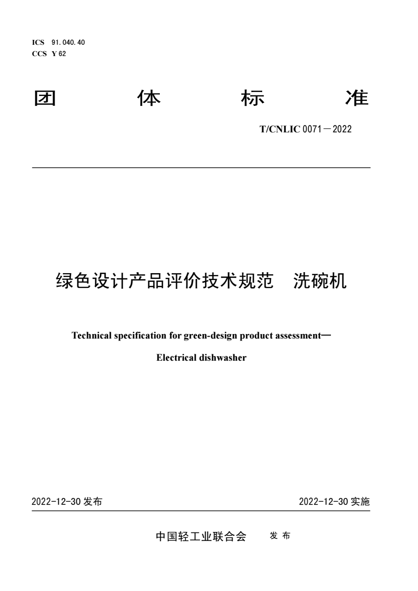 T_CNLIC 0071-2022 绿色设计产品评价技术规范 洗碗机.pdf
