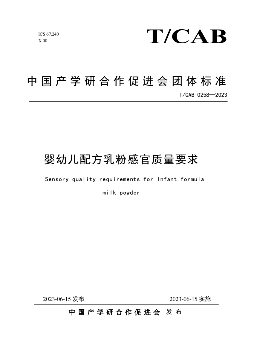 T_CAB 0258-2023 婴幼儿配方乳粉感官质量要求.pdf