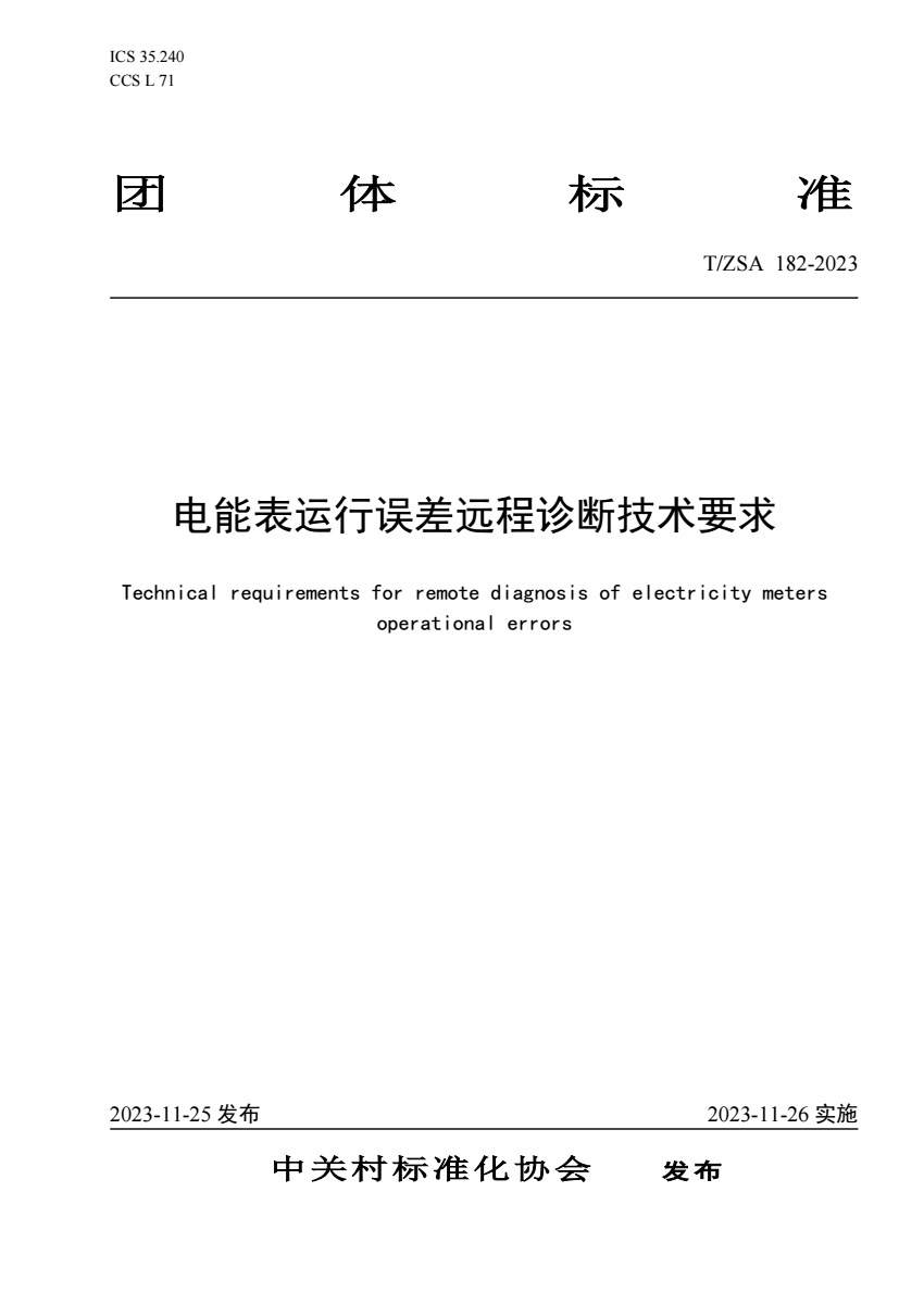 T_ZSA 182-2023 电能表运行误差远程诊断技术要求.pdf