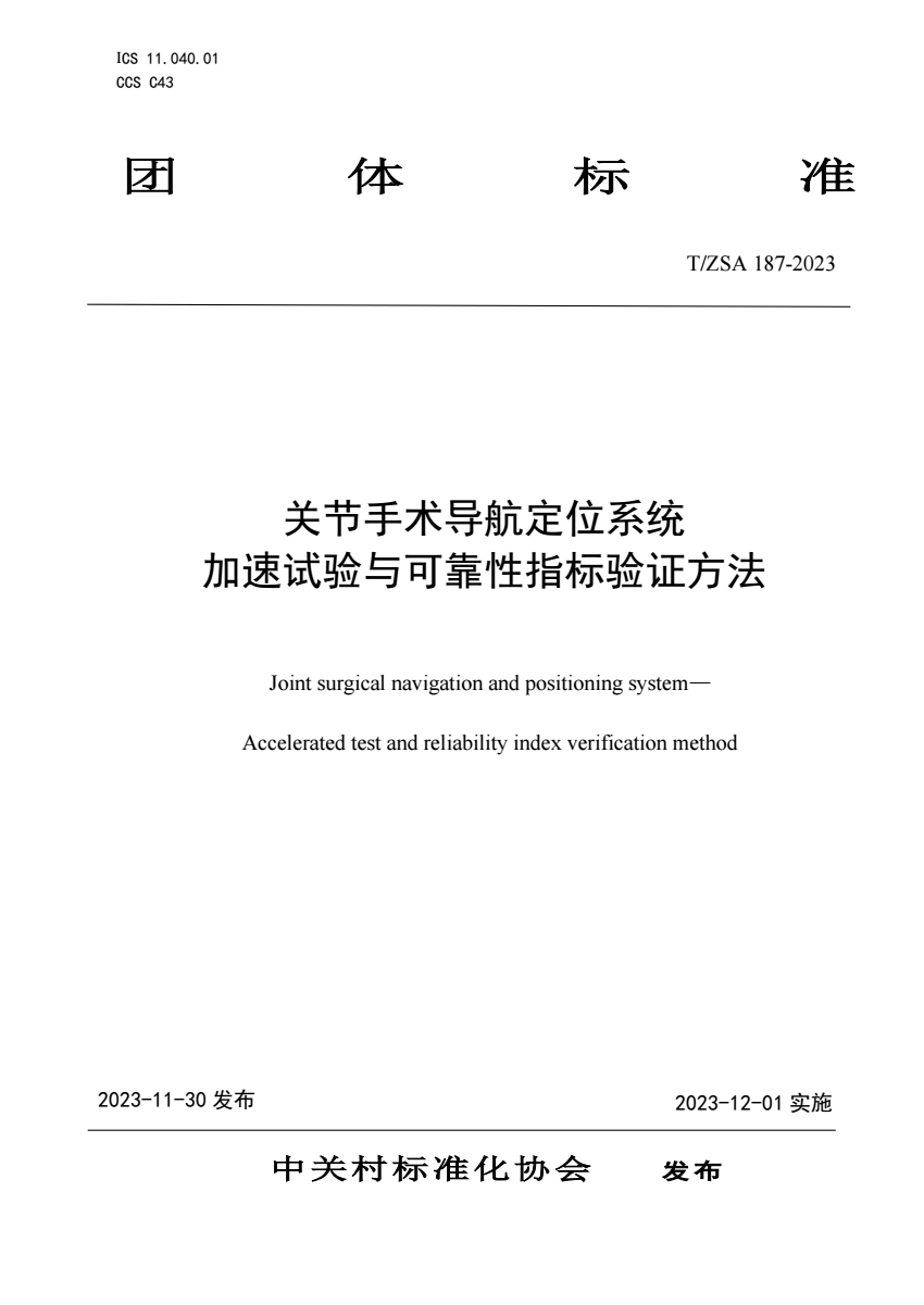 T_ZSA 187-2023 关节手术导航定位系统 加速试验与可靠性指标.pdf