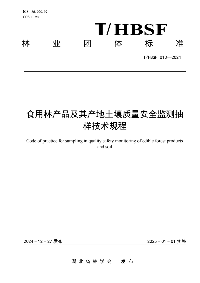 英文名称:Code of practice for sampling in quality safety monitoring of edible forest products and soil