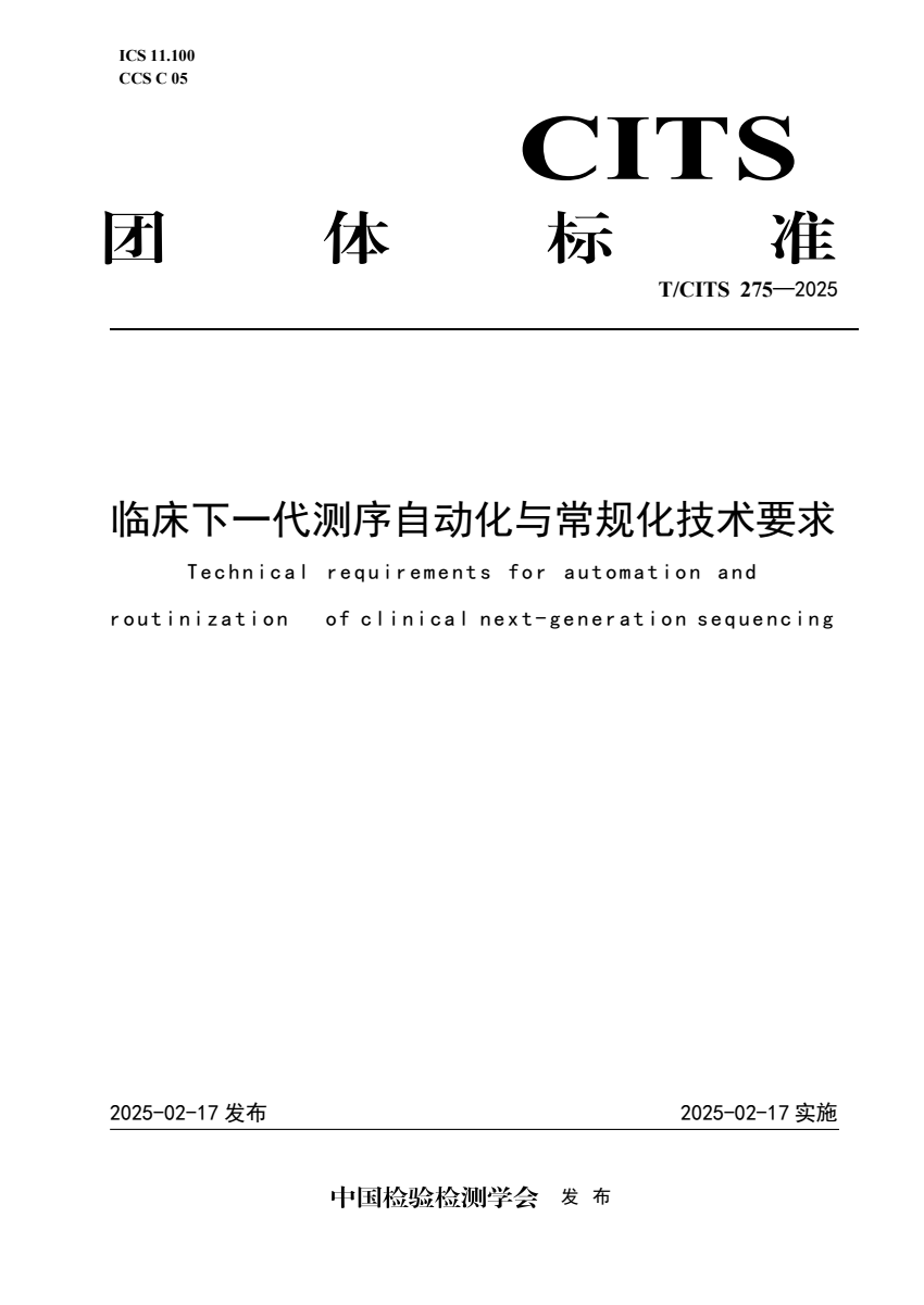 T_CITS 275-2025 临床下一代测序自动化与常规化技术要求.pdf