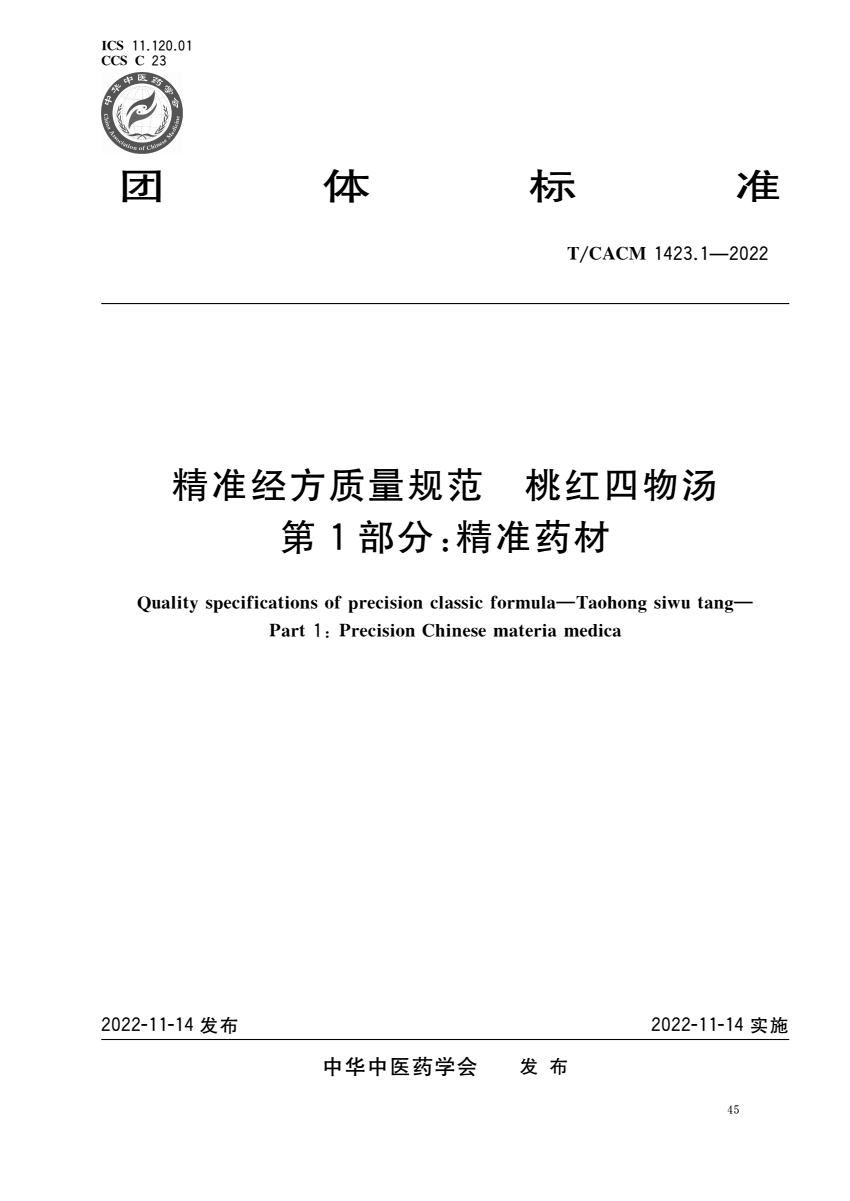 标准编号:T/CACM 1423.1-2022