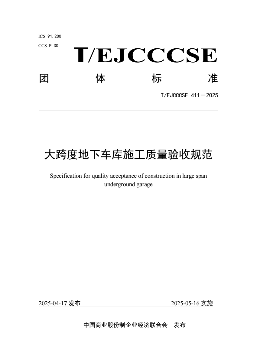 T_EJCCCSE 411-2025 大跨度地下车库施工质量验收规范.pdf