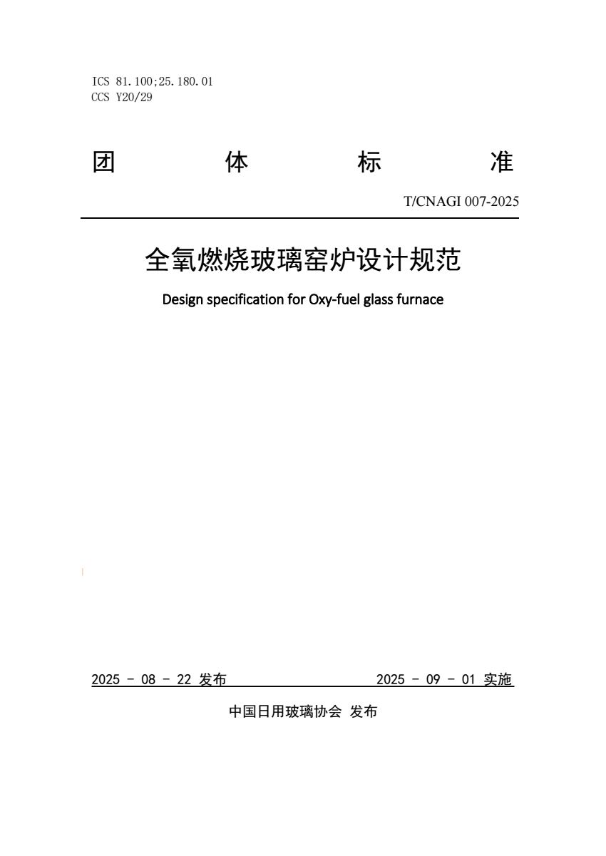 T_CNAGI 007-2025 全氧燃烧玻璃窑炉设计规范.pdf