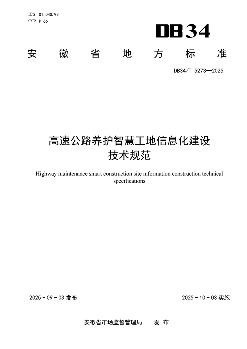 DB34_T 5273-2025 高速公路养护智慧工地信息化建设技术规范.pdf