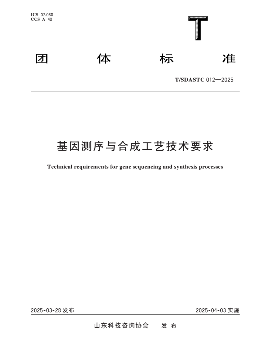 T_SDASTC 012-2025 基因测序与合成工艺技术要求.pdf