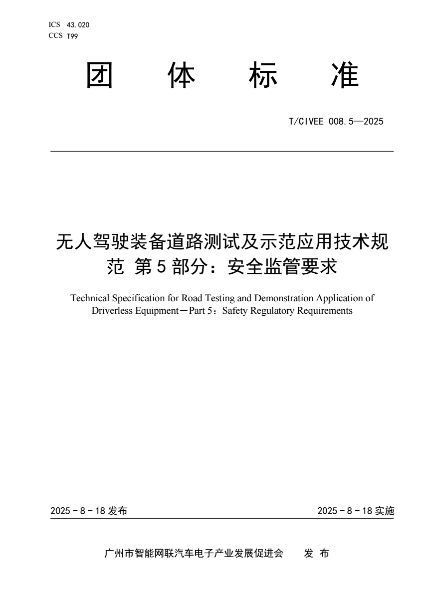 T/CIVEE 008.5-2025 无人驾驶装备道路测试及示范应用技术规范 第5部分:安全监管要求