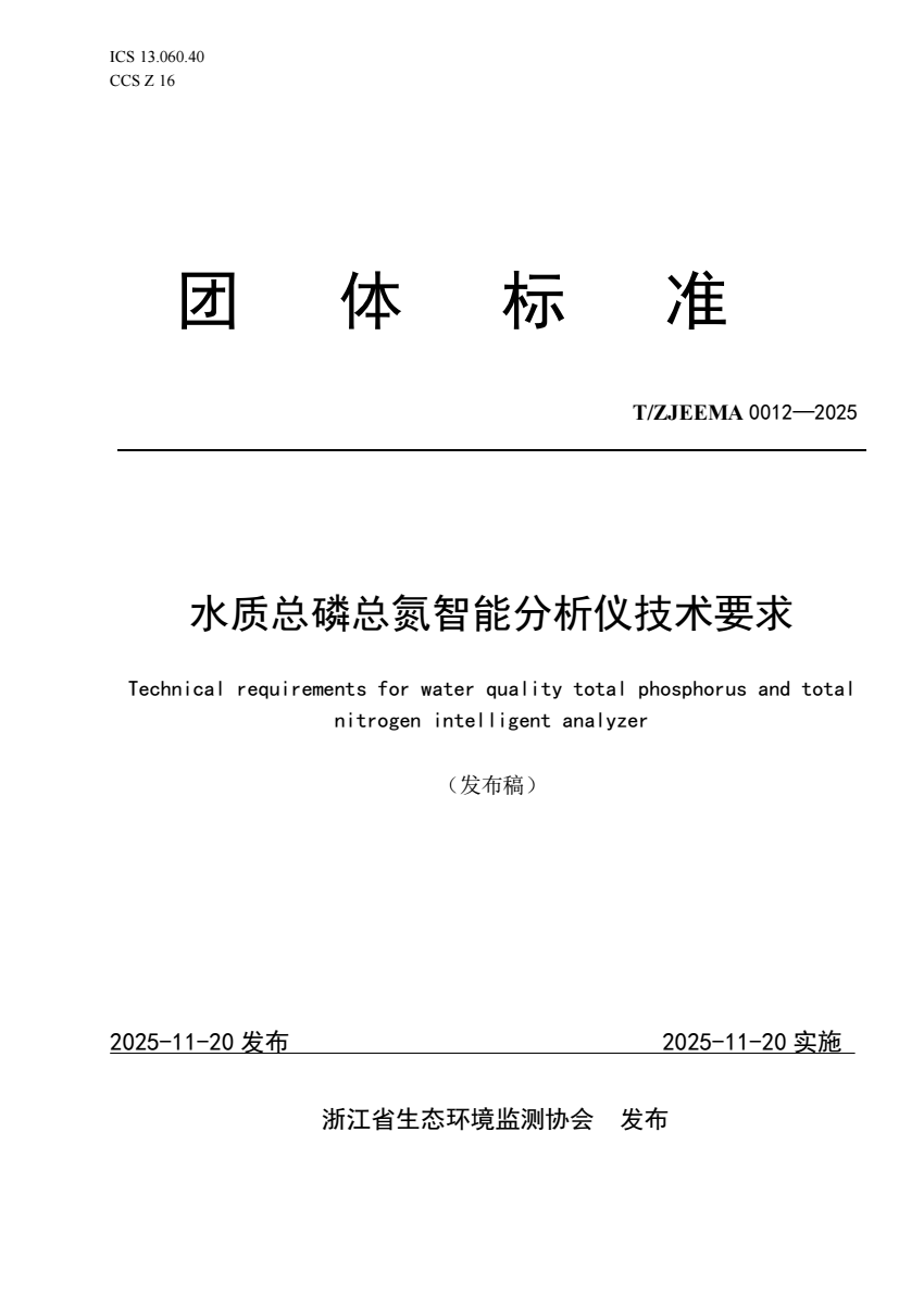 T_ZJEEMA 0012-2025 水质总磷总氮智能分析仪技术要求.pdf