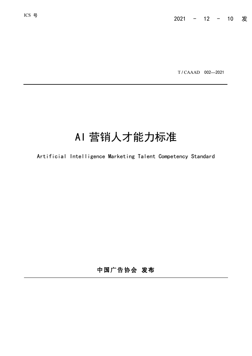 内容简介:本标准规定了AI 营销人才能力评估标准的指标体系、分级要求。 T_CAAAD 001-2021 互联网广告数据应用和安全技术要求.pdf(491.35 KB)