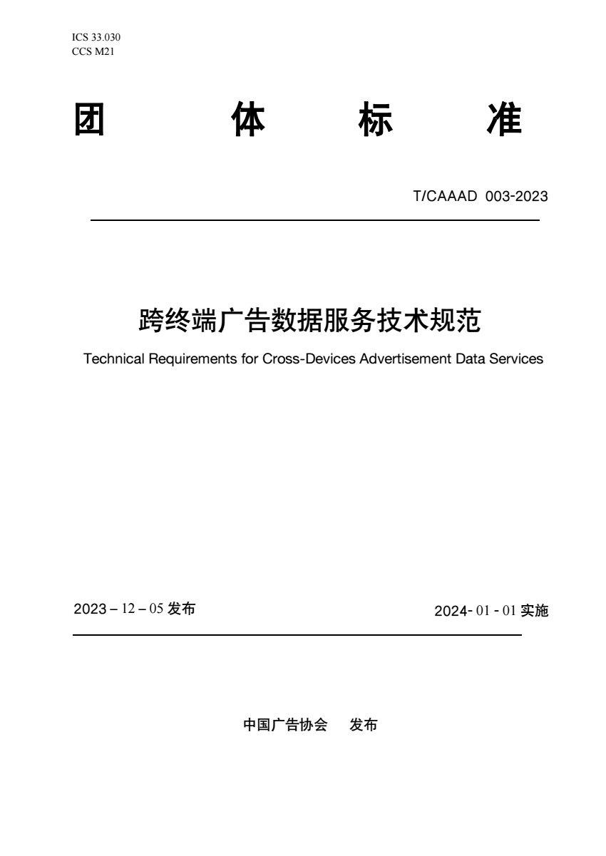 英文名称:Technical Requirements for Cross-Devices Advertisement Data Services