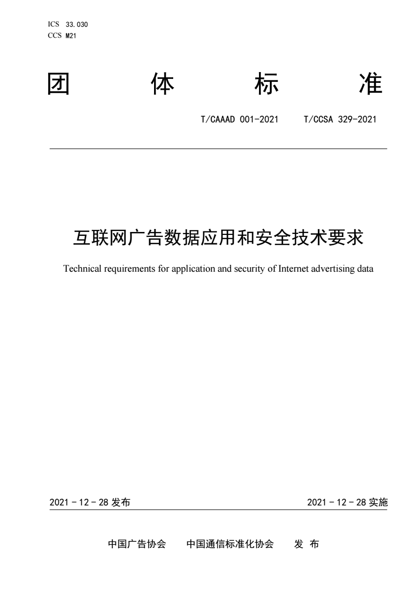 英文名称:Technical requirements for application and security of Internet advertising data