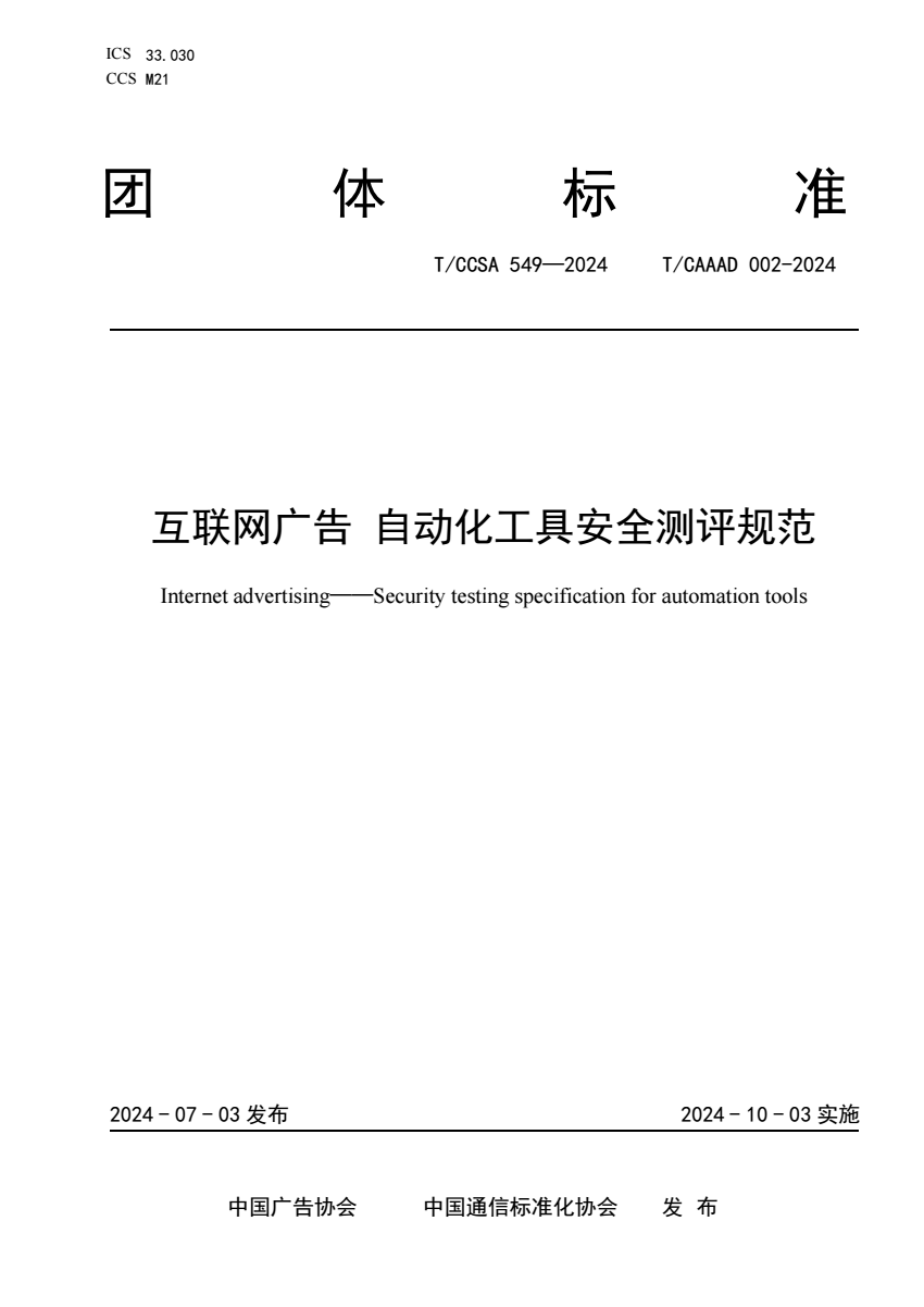 T_CCSA 549-2024 互联网广告 自动化工具安全测评规范.pdf