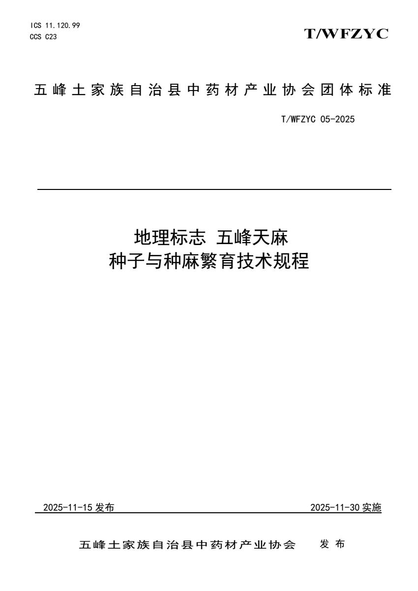 T_WFZYC 05-2025 地理标志 五峰天麻种子与种麻繁育技术规程.pdf