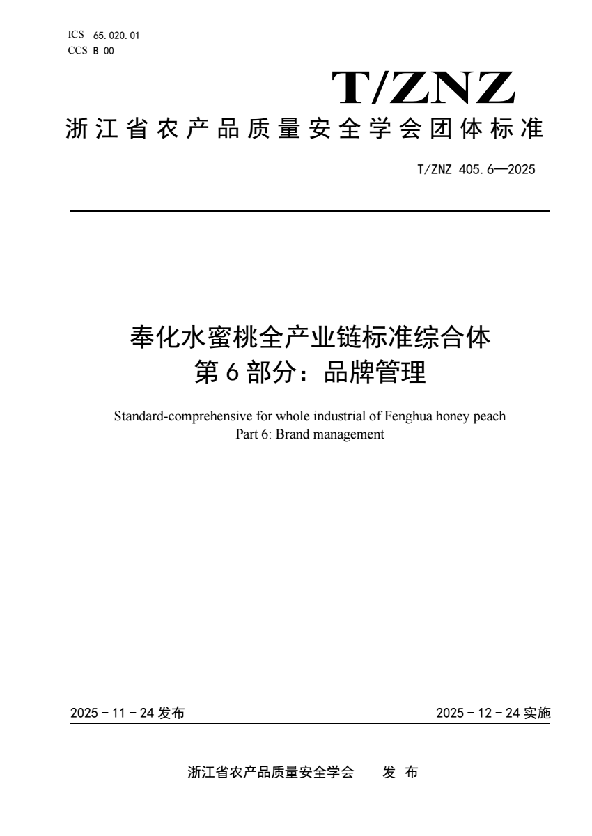 中文名称:奉化水蜜桃全产业链标准综合体 第6部分:品牌管理