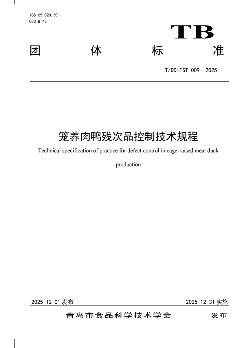 T_QDIFST 009-2025 笼养肉鸭残次品控制技术规程.pdf
