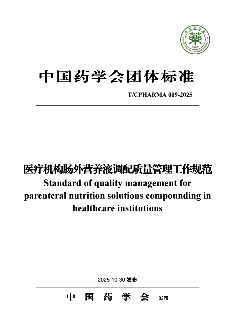 T_CPHARMA 009-2025 医疗机构肠外营养液调配质量管理工作.pdf