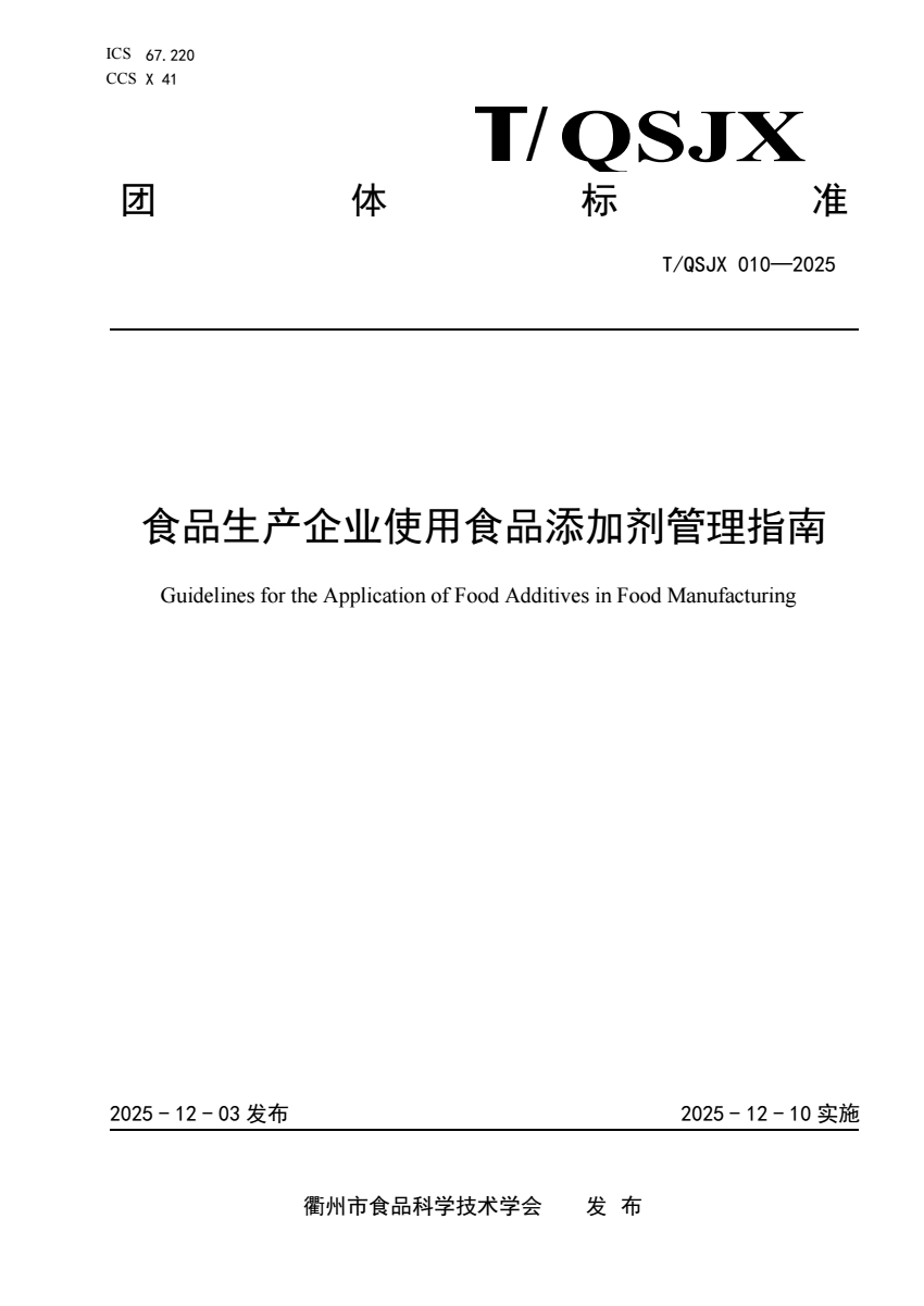 标准编号:T/QSJX 010-2025