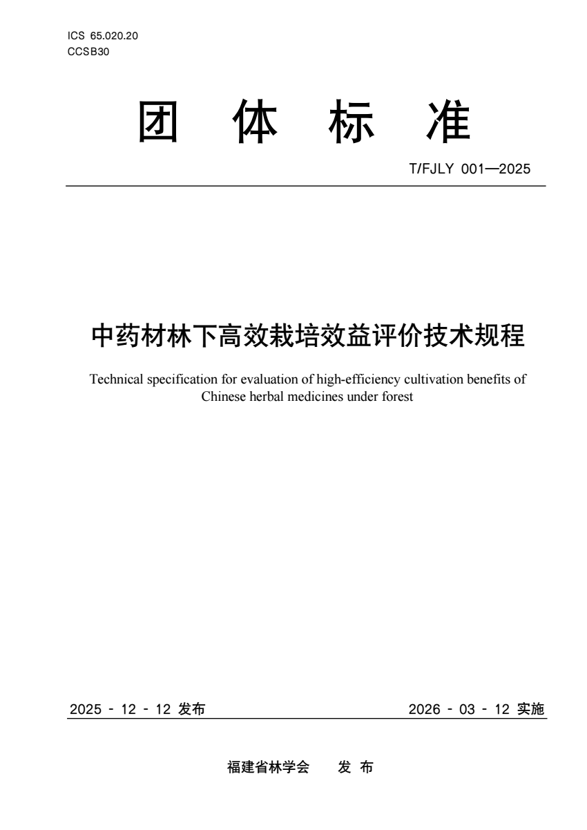 T_FJLY 001-2025 中药材林下高效栽培效益评价技术规程.pdf
