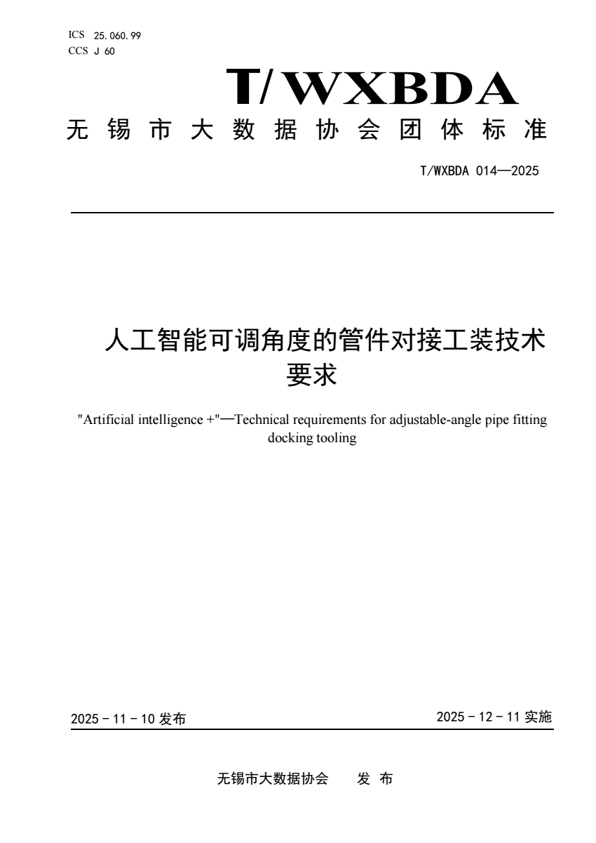 T_WXBDA 014-2025 人工智能可调角度的管件对接工装技术要求.pdf