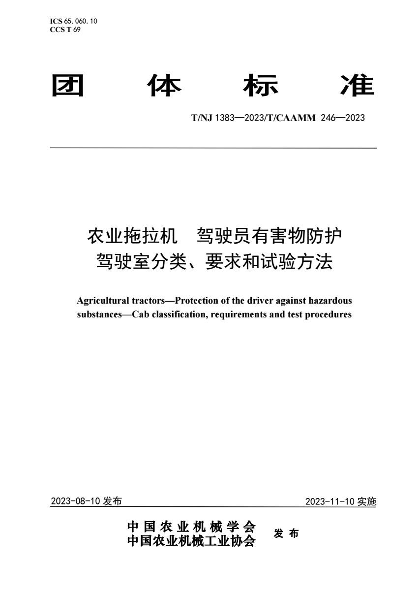 T_NJ 1383-2023 农业拖拉机 驾驶员有害物防护 驾驶室分类、.pdf