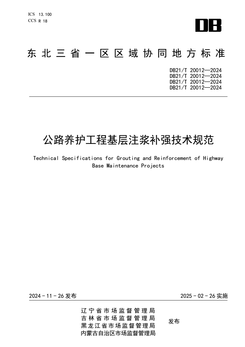 中文名称:公路养护工程基层注浆补强技术规范