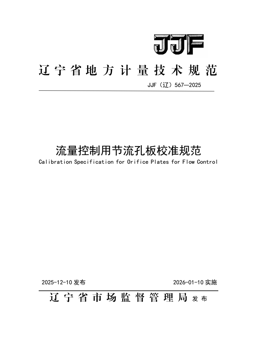 JJF(辽) 567-2025 流量控制用节流孔板校准规范