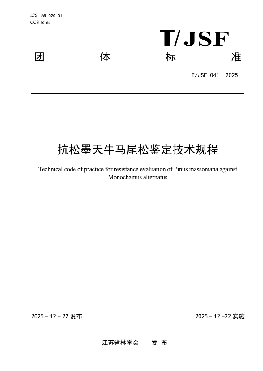 T_JSF 041-2025 抗松墨天牛马尾松鉴定技术规程.pdf