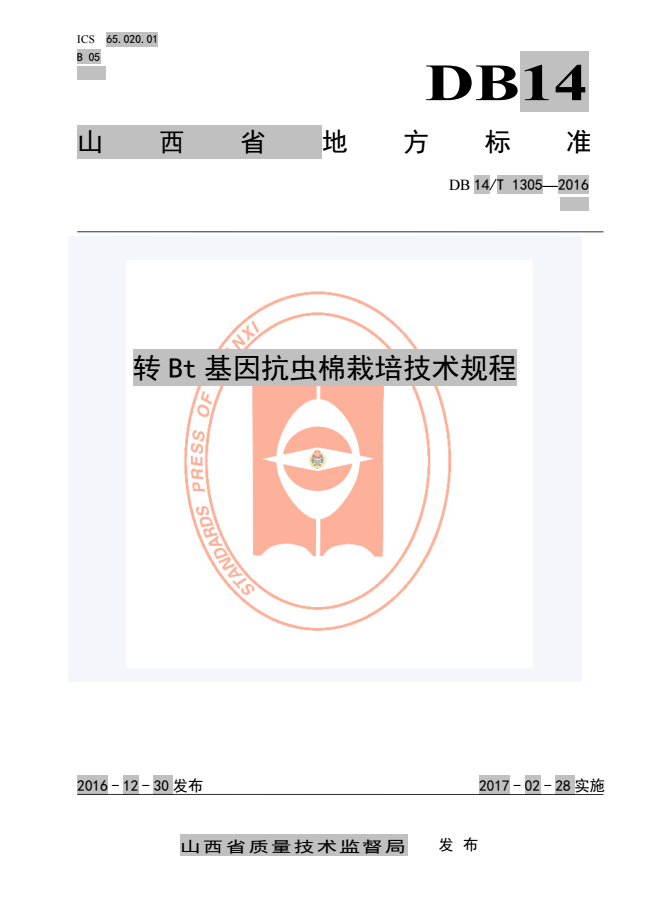 DB14_T 1305-2016 转Bt基因抗虫棉栽培技术规程.pdf (1.44 MB)