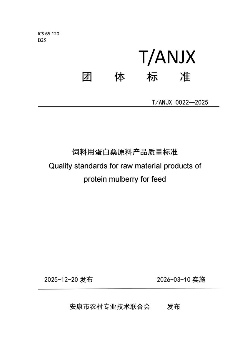 T_ANJX 0022-2025 饲料用蛋白桑原料产品质量标准.pdf