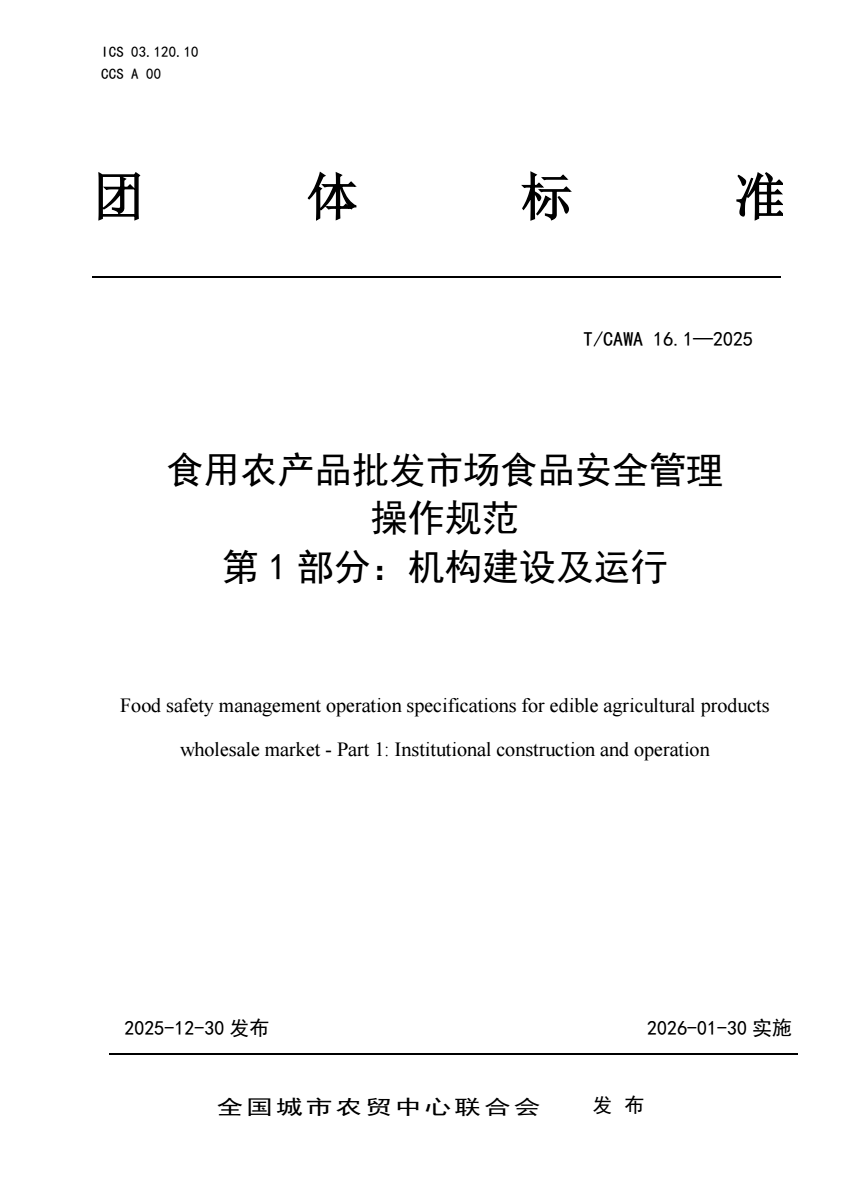 T_CAWA 16.1-2025 食用农产品批发市场食品安全管理操作规范.pdf