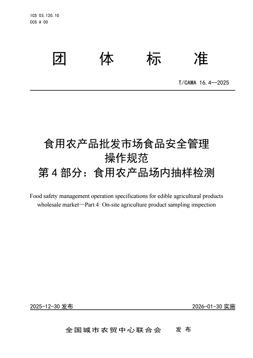 T_CAWA 16.4-2025 食用农产品批发市场食品安全管理操作规范.pdf