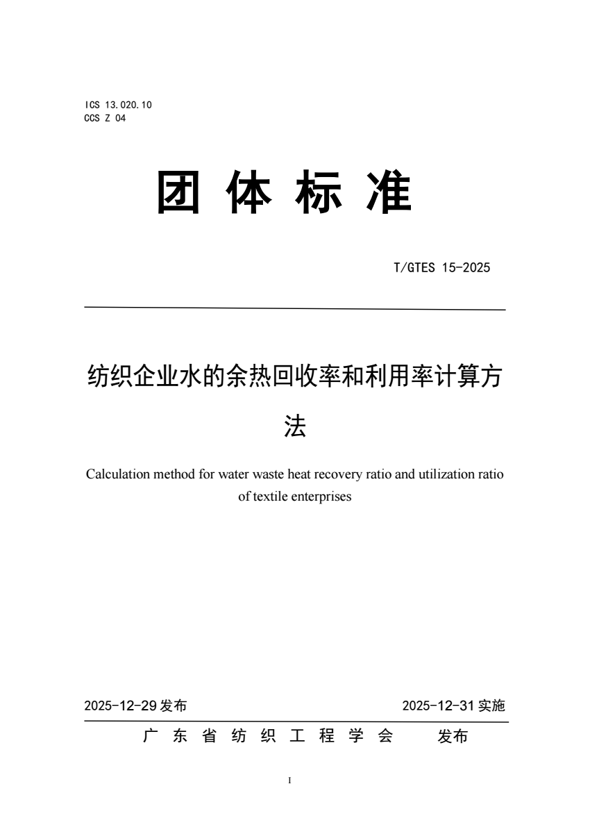 T_GTES 15-2025 纺织企业水的余热回收率和利用率计算方法.pdf