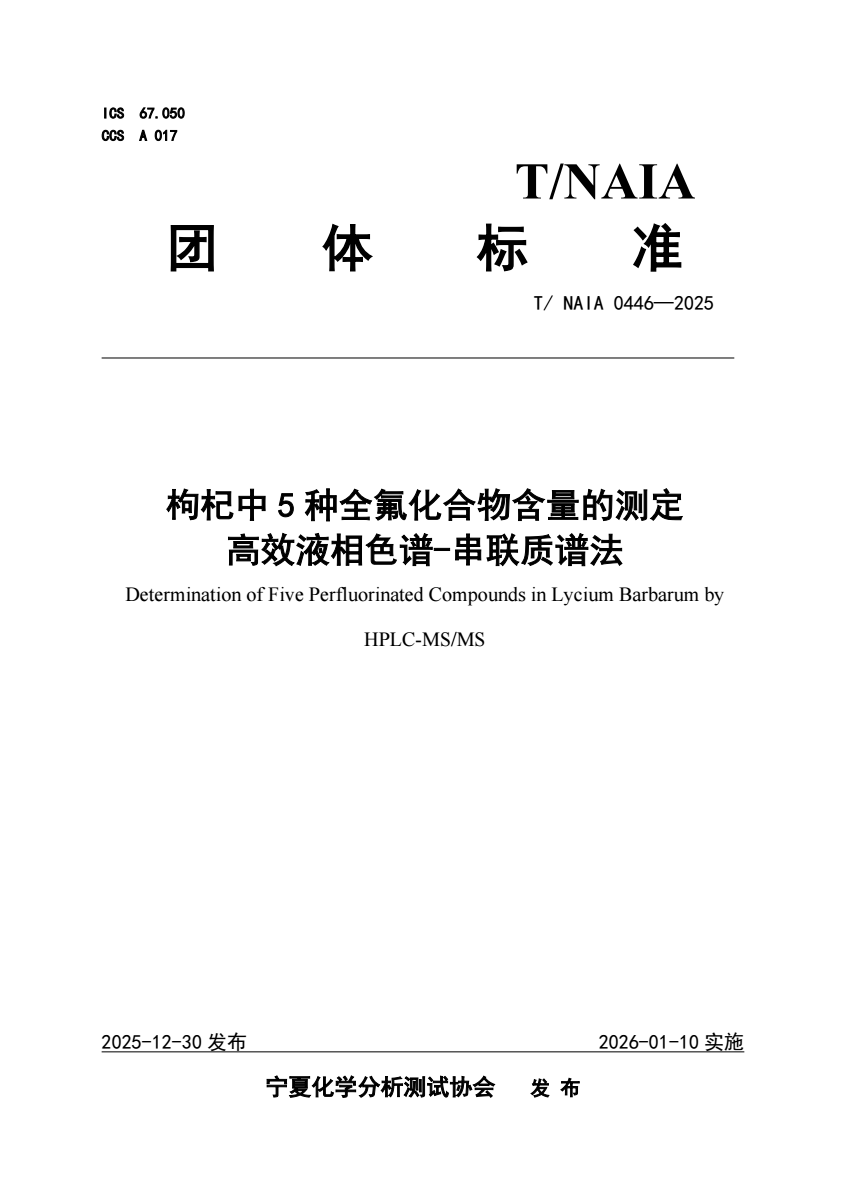 T_NAIA 0446-2025 枸杞中5种全氟化合物含量的测定 高效液.pdf